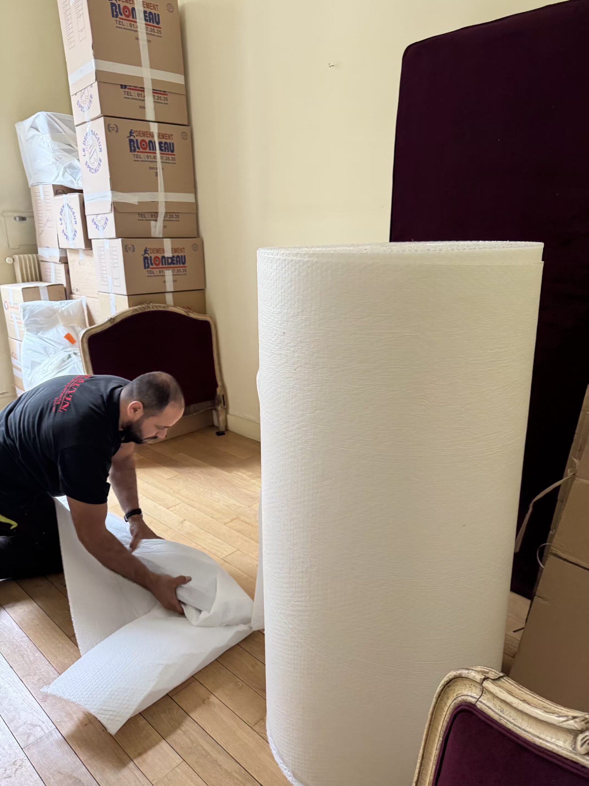 - Matériel professionnel : Monte-meubles, camions capitonnés, équipements de protection