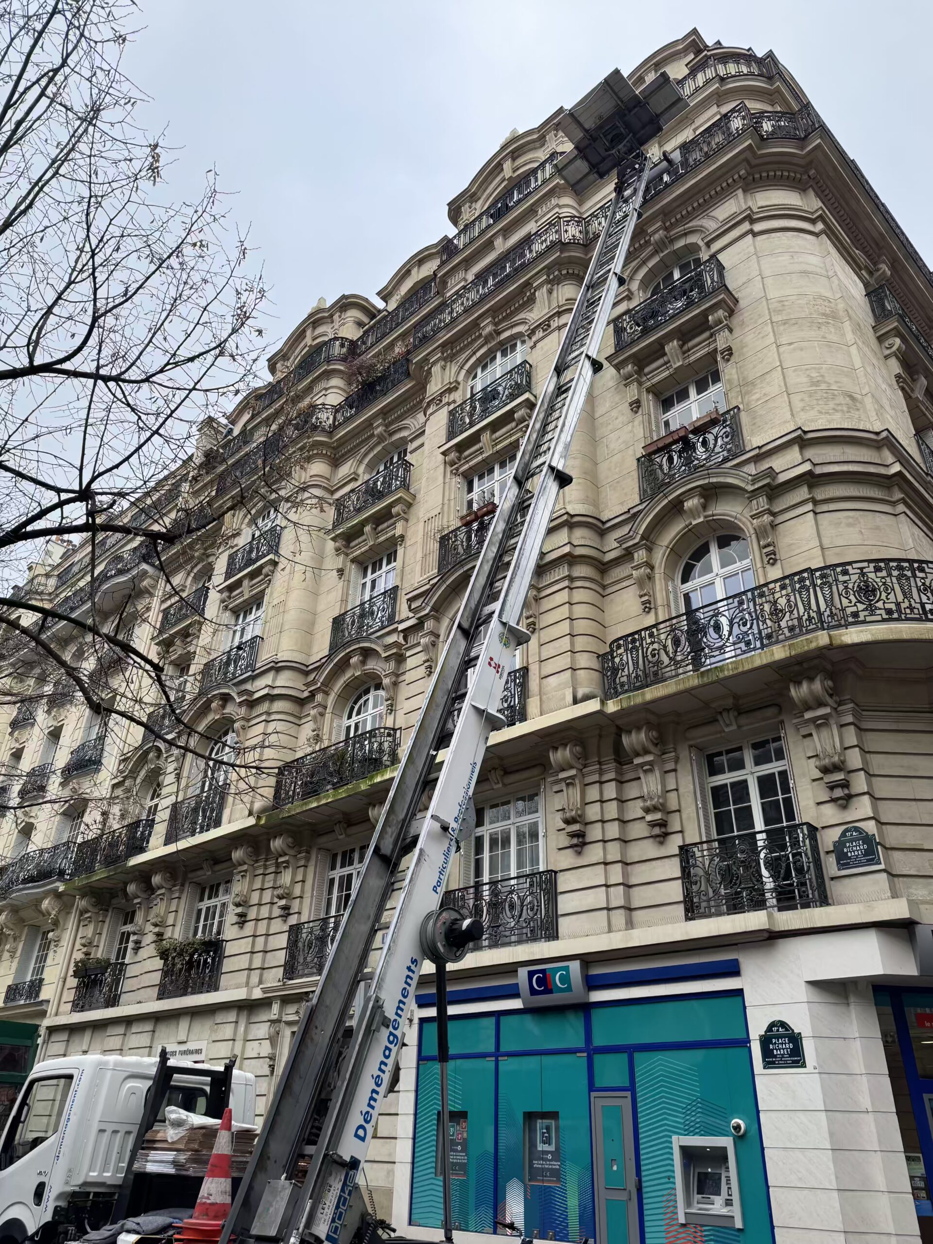 Que vous ayez besoin de déménager un piano à queue de 400 kg, un canapé d'angle trop volumineux, ou l'intégralité de votre appartement haussmannien, notre flotte de monte-meubles, d'échelles électriques et de bras de grue vous assure une solution adaptée. Nous gérons également toutes les démarches administratives, notamment l'autorisation de stationnement auprès de la mairie de Paris.