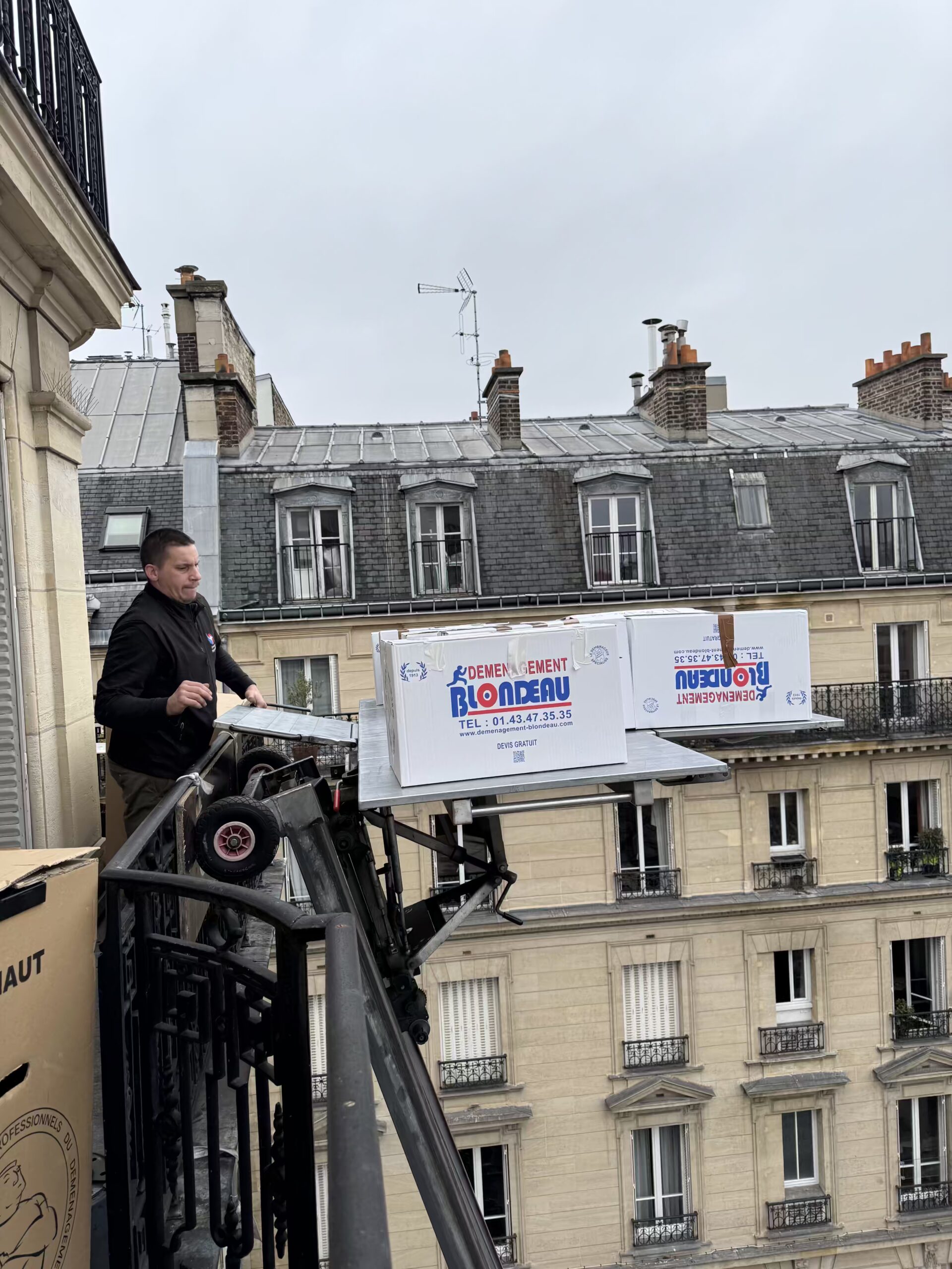 Fort de 112 ans d'expertise depuis 1913, Blondeau Déménagement est le spécialiste reconnu du déménagement à Paris dans les situations complexes. Lorsque votre cage d'escalier est trop étroite, que vous habitez au 6ème étage sans ascenseur, ou que vos meubles ne passent simplement pas par la porte, nous avons la solution : le déménagement par fenêtre avec monte-meubles professionnel.